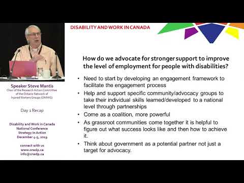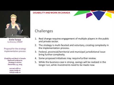 Disability and Work in Canada 2019: Strategy in Action, was held in Ottawa on December 4 and 5, 2019. The conference reviewed a revised pan-Canadian strategy to improve the level of employment of persons with disabilities and identify the most important early steps in implementation.